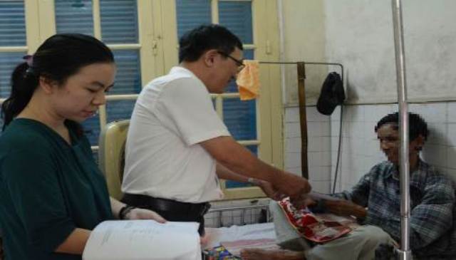 BS CKII Nguyễn Lê Tâm, Trưởng khoa Phòng, chống HIV/AIDS thăm hỏi, tặng quà cho người nhiễm "H" đang bị ốm