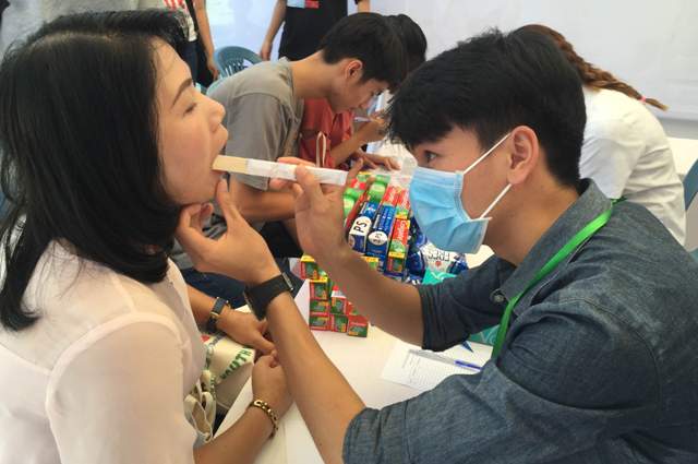Kiểm tra huyết áp tại Ngày hội vì sức khỏe tuổi trẻ 2017