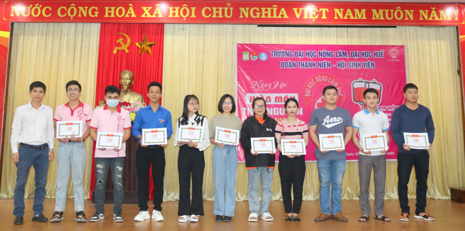 HNN.VN - Sáng 28/10, Đoàn Thanh niên - Hội Sinh viên Trường đại học (ĐH) Nông Lâm, ĐH Huế phối hợp Trung tâm Huyết học Truyền máu Bệnh viện Trung ương Huế tổ chức ngày hội hiến máu tình nguyện đợt 2, năm 2022.
