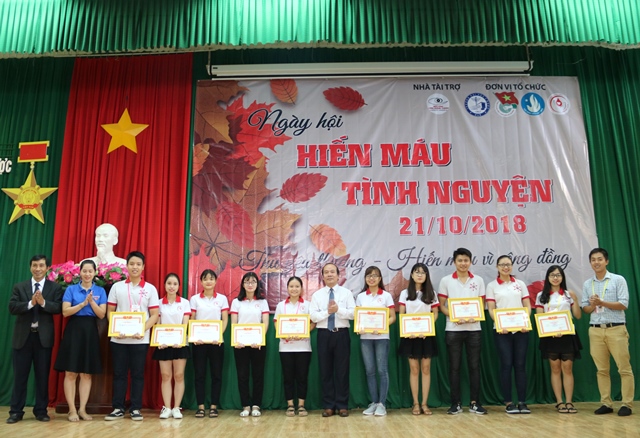 Dịp này, Đoàn Trường ĐH Y dược, ĐH Huế khen thưởng 10 cá nhân có nhiều đóng góp cho phong trào vận động hiến máu tình nguyện.