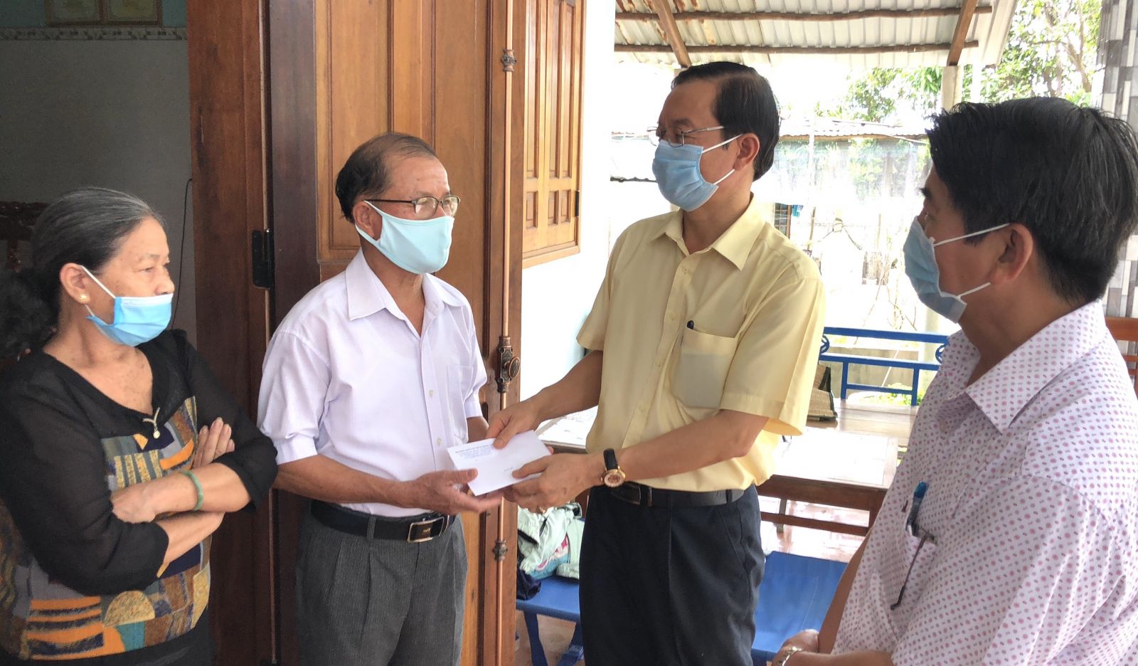 Lãnh đạo TX. Hương Thủy tặng quà vợ chồng ông Dung, bà Bông tại chốt số 4