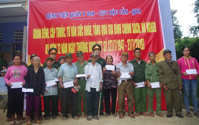 HNN.VN - Trong hai ngày 24 và 25/7, Bệnh viện Quân y 268, Cục Hậu cần, Quân khu IV tổ chức đoàn công tác gồm 20 y, bác sĩ và mang theo trang thiết bị như máy siêu âm, điện tim khám tư vấn sức khỏe, cấp thuốc, tặng quà cho các gia đình chính sách, gia đình nghèo ở xã Hồng Thủy, A Lưới.