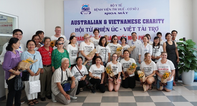 Các thành viên Hội Úc-Việt và cán bộ y, bác sĩ BV Trung ương Huế, Cơ sở 2 chụp ảnh lưu niệm