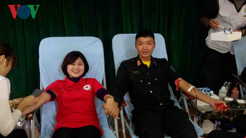 Các bạn trẻ ở huyện Sóc Sơn- Hà Nội tham gia hiến máu dịp trước Tết