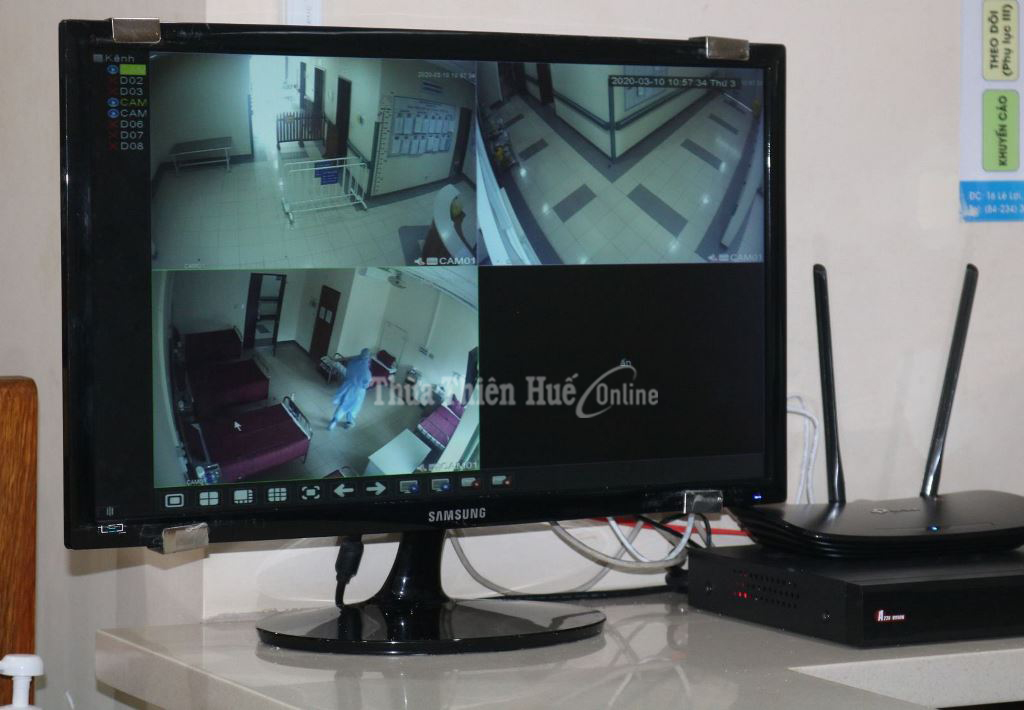 Màn hình theo dõi không gian và các diễn biến bên trong phòng bệnh qua camera giám sát được đặt ở khu vực trực để các bác sĩ nắm bắt thông tin