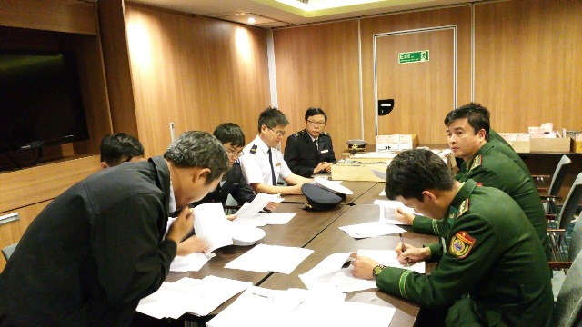 Kiểm tra danh sách thuyền viên, danh sách hành khách du lịch, bảng khai báo y tế hàng hải và cấp giấy chứng nhận cho tàu nước ngoài đến cảng Chân Mây.