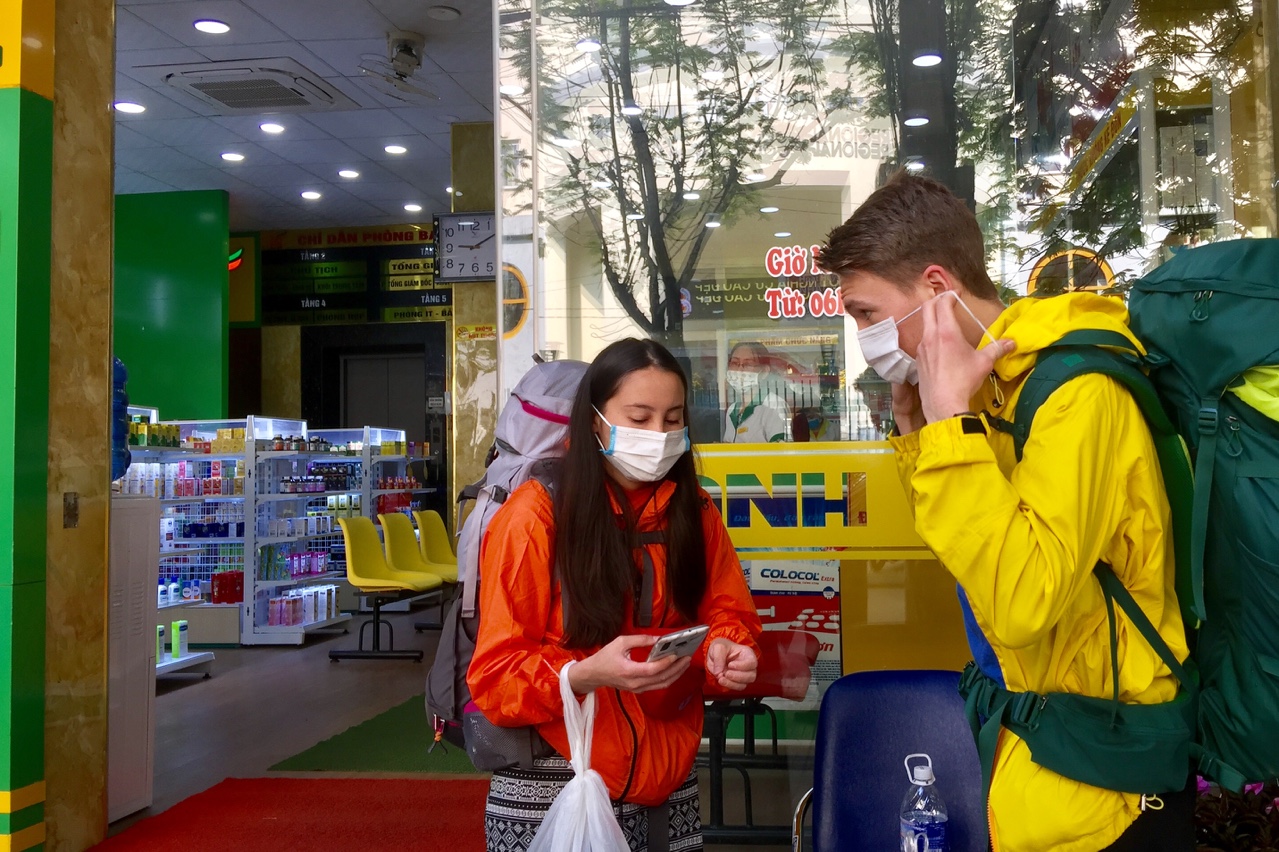 Du khách nước ngoài không thể mua thêm khẩu trang y tế và dung dịch sát khuẩn sau khi Nhà thuốc Mạnh Tý (đường Ngô Quyền) thông báo "cháy" hàng