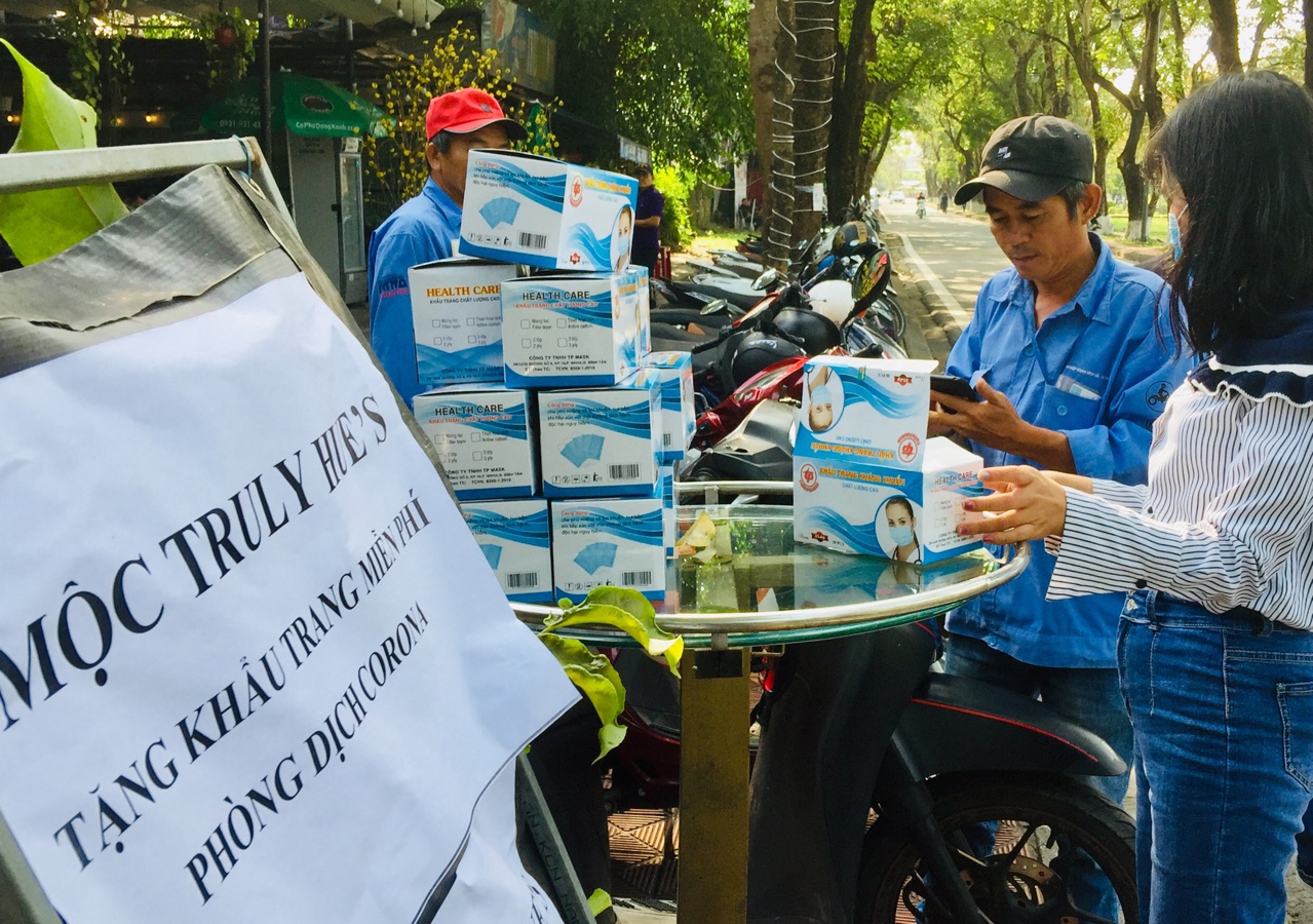 Dẫu vậy, cũng trong thời điểm này, đã có nhiều cá nhân, tập thể trên địa bàn TP. Huế phát khẩu trang, dung dịch sát khuẩn miễn phí với số lượng lên đến hàng ngàn chiếc.