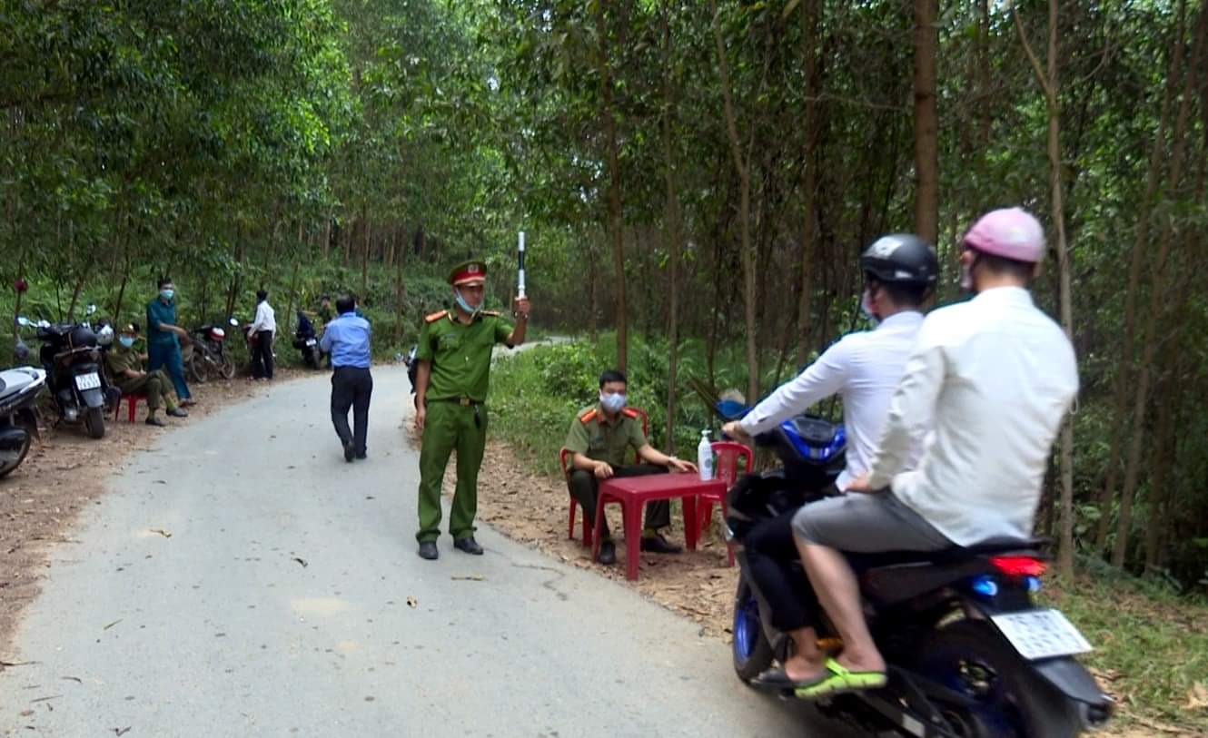Lực lượng công an chốt chặn tại ngã ba vào bãi tắm Khe Đầy ngày 3/4