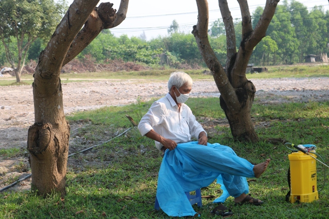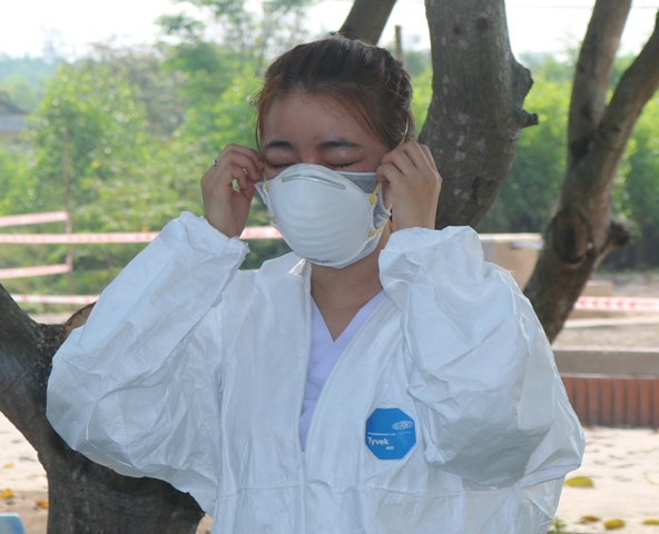 Buổi lấy mẫu có 9 nhân viên y tế trực tiếp thao tác thực hiện; trong đó, 3 nhân viên làm công tác dịch tễ mang áo bảo hộ màu xanh; 6 nhân viên lấy mẫu xét nghiệm có trang phục bảo hộ màu trắng. Trong bộ trang phục đó, mỗi nhân viên y tế, dù là nam hay nữ thì chỉ cần sau 10 -15 phút là mồ hôi đã ướt đẫm bên trong. Cảm giác khó chịu tăng lên gấp bội khi họ phải làm việc trong điều kiện thời tiết ngày càng nắng nóng hơn như hiện nay.