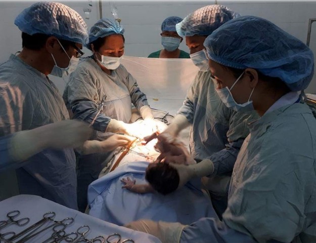 Một ca mổ đẻ cho sản phụ tại TTYT huyện Phú Vang ngày 6/11