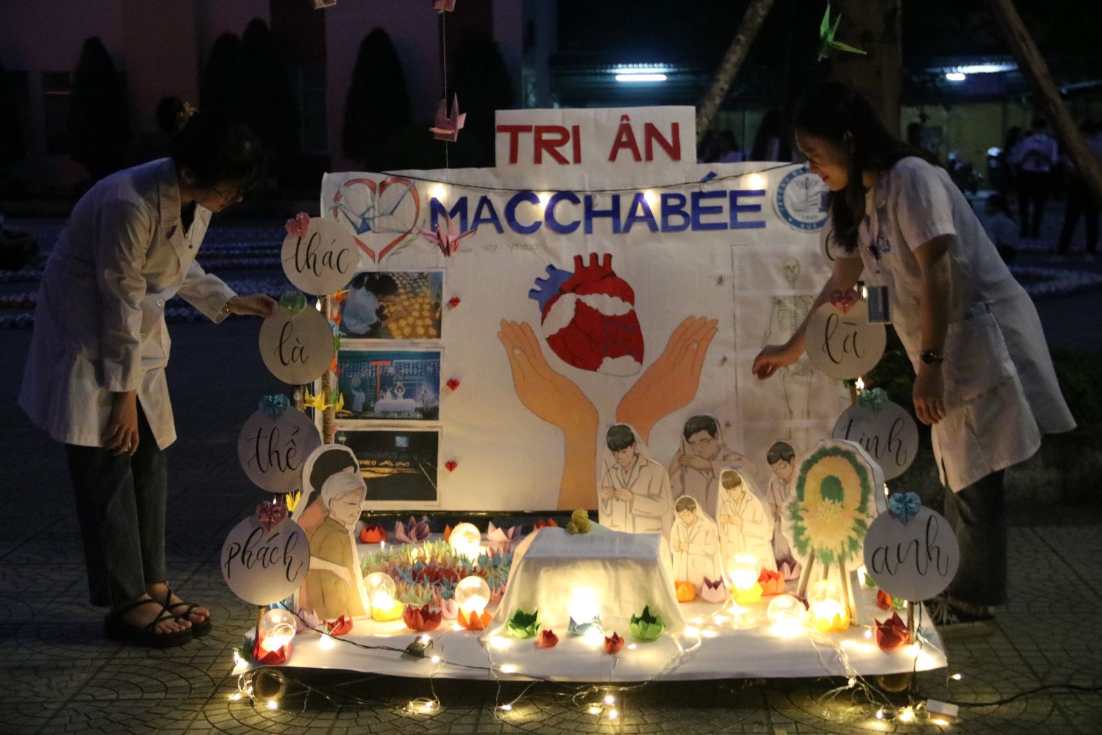 Năm nay, lễ hội Macchabée ở Trường ĐH Y - Dược, ĐH Huế tổ chức với hơn 10.000 hạc giấy được gấp bởi các sinh viên, những ngọn đèn hoa đăng thắp sáng khắp sân trường. Chương trình có sự tham gia của hơn 1.500 cán bộ, sinh viên.