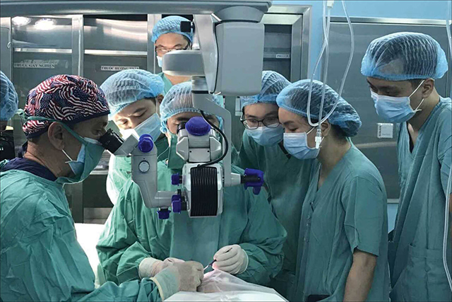 Bác sĩ Tuyên (giữa) trong ca ghép giác mạc tại Cơ sở 2