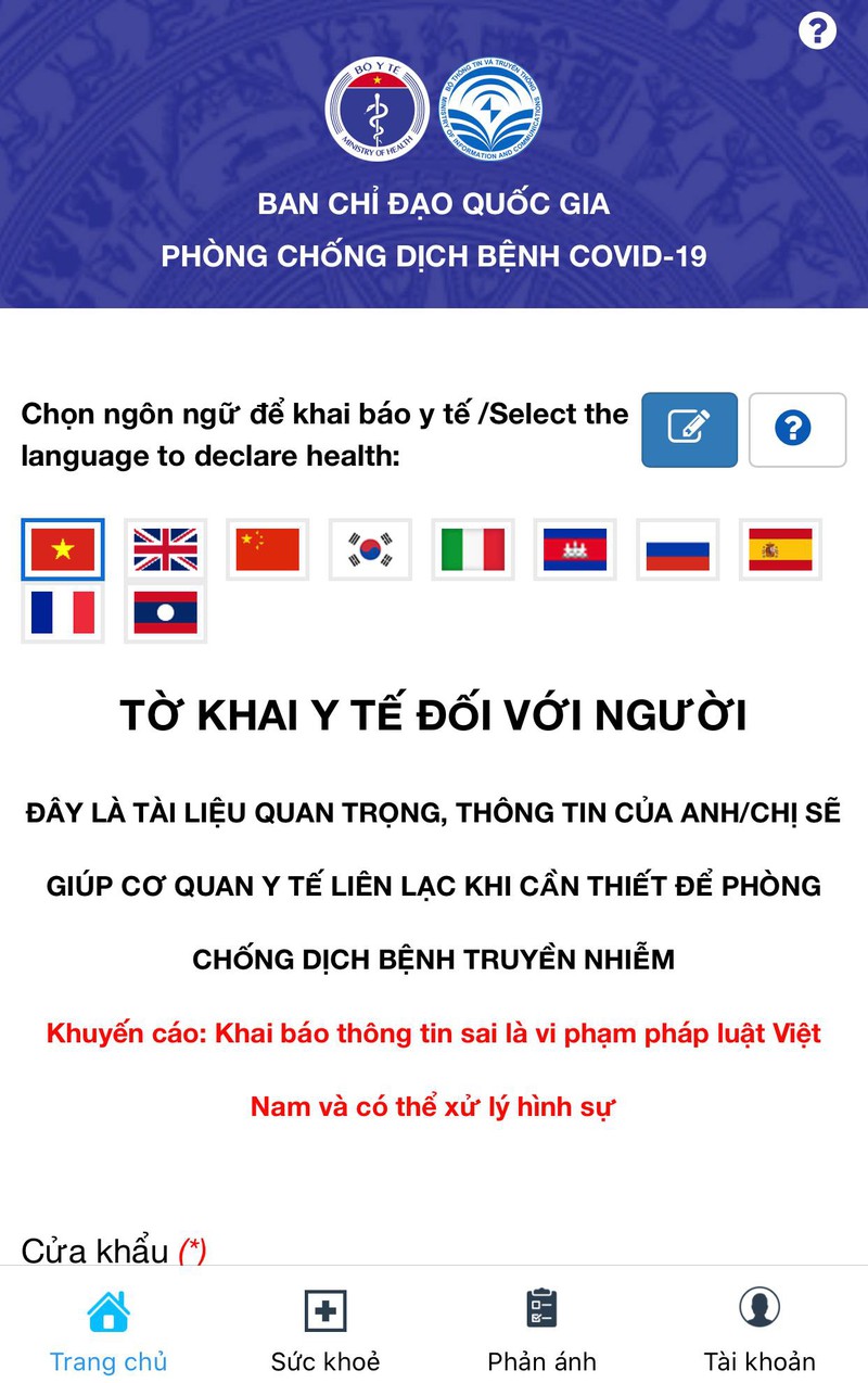 Khách nước ngoài khai báo y tế qua ứng dụng ứng dụng Vietnam health declaration.