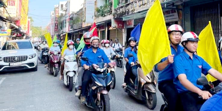 Đoàn viên thanh niên tuần hành qua các tuyến đường trung tâm của phường Đông Ba (TP.Huế)