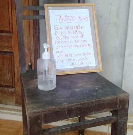 Cụ thể, nội dung thông báo là: “Thông báo: Gia đình mới đi du lịch Đà Nẵng – Quảng Ngãi về (tự cách ly tại nhà 14 ngày từ 26/7 – 8/8/2020) xin hàng xóm thông cảm không lại gần. Xin cảm ơn”.
