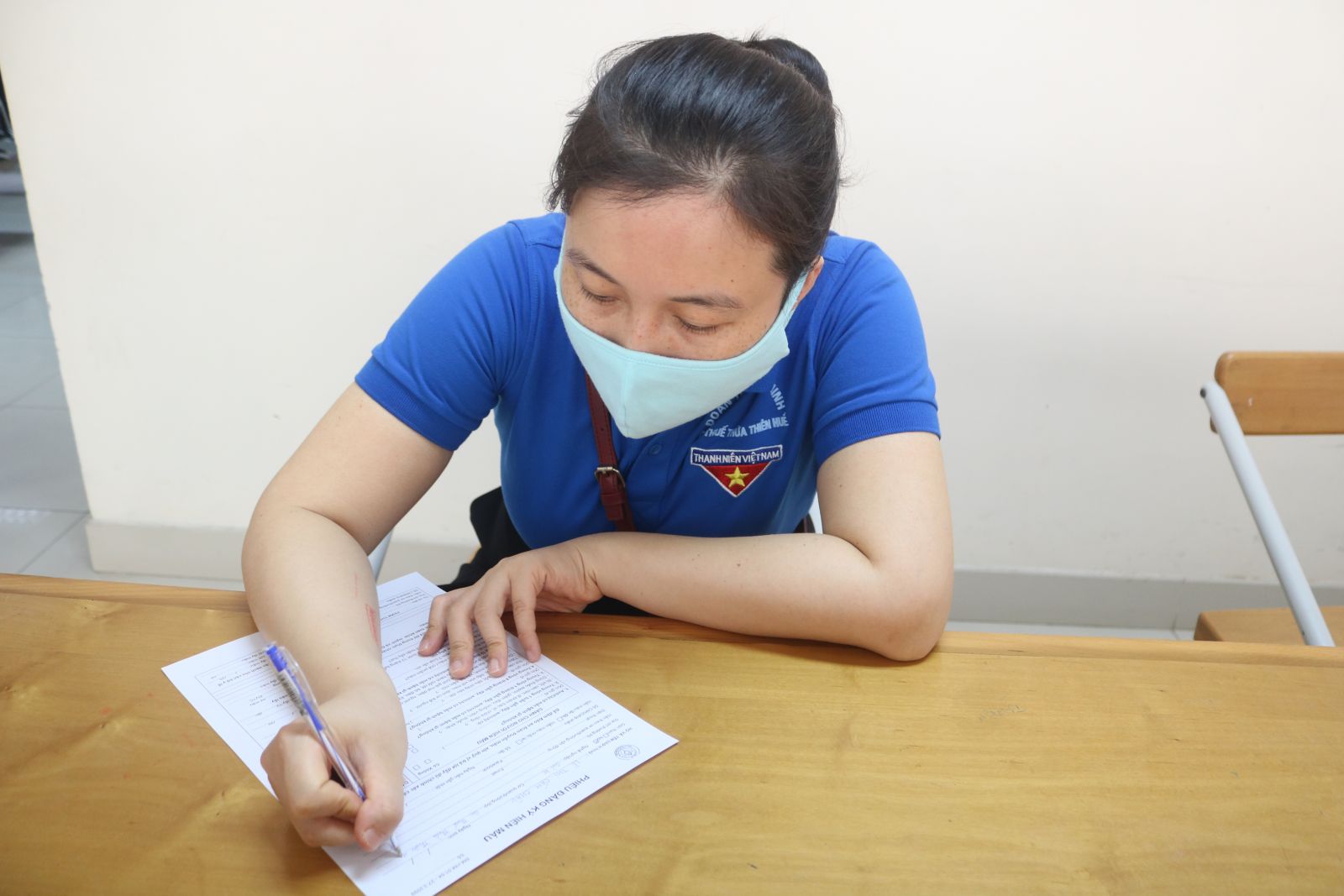 Đoàn viên điền thông tin cá nhân trước khi vào kiểm tra sức khỏe