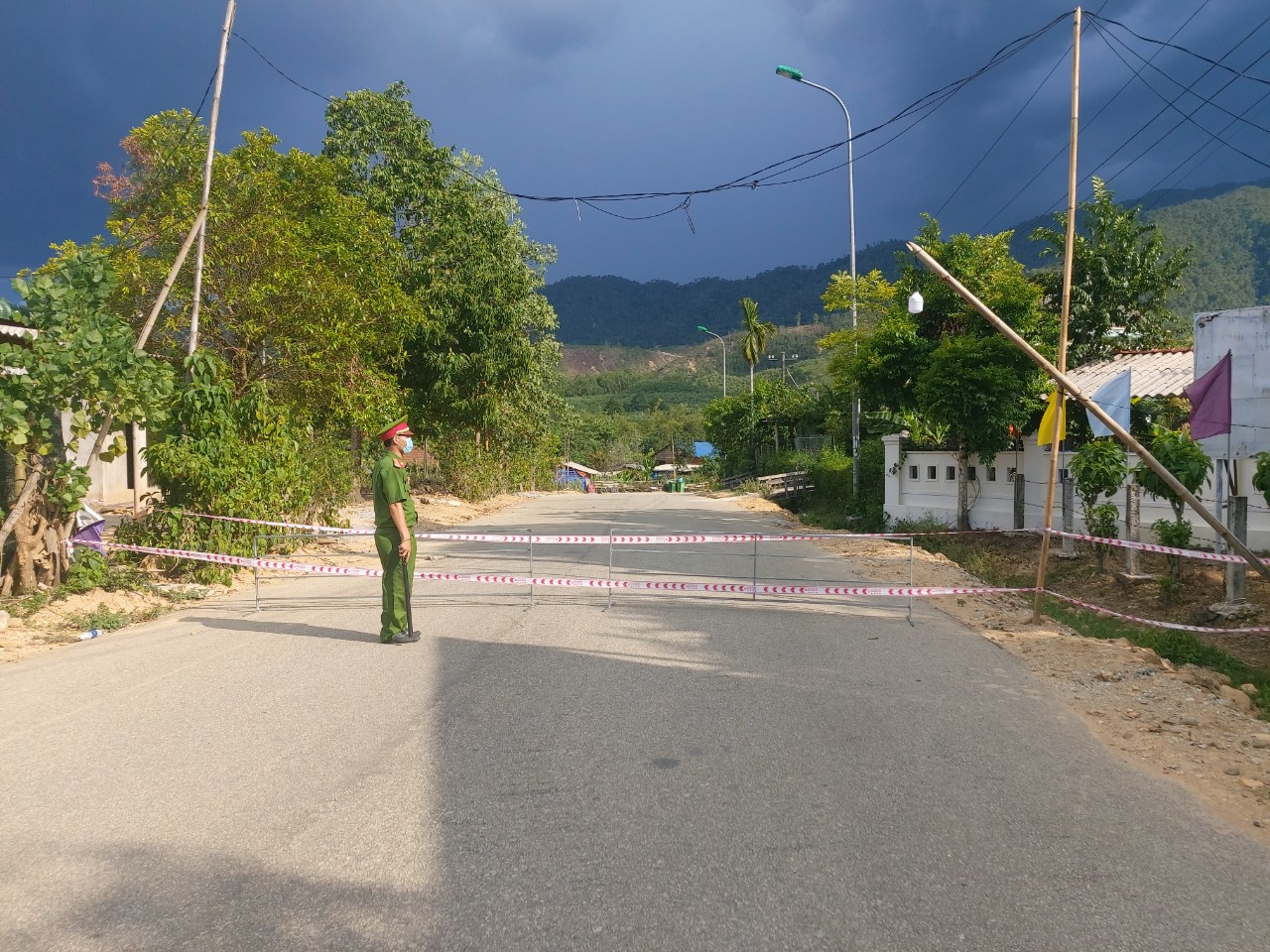 Lực lượng chức năng phong tỏa cụm dân cư tại thôn 6, xã Thượng Long