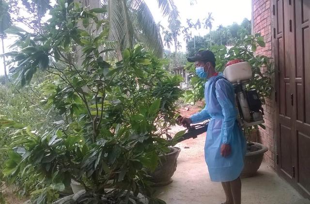 Phun hóa chất chủ động phòng bệnh sốt xuất huyết ở thị trấn Khe Tre
