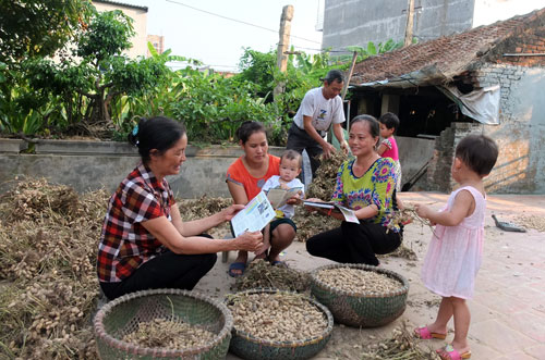 Vận động nông dân tham gia BHYT tại huyện Quế Võ, tỉnh Bắc Ninh. Ảnh: Diệu Linh