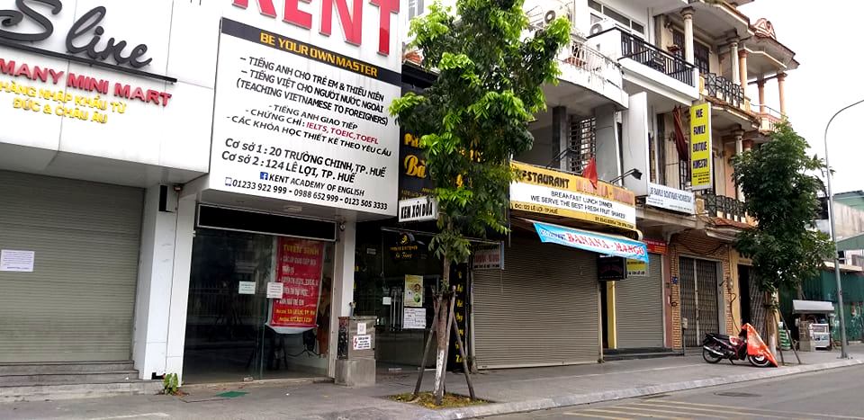 Thường thì 7 giờ 30 phút đến 8 giờ sáng, các cửa hàng lớn dọc tuyến đường Mai Thúc Loan, Bà Triệu, Nguyễn Huệ… đã mở cửa để đón khách. Tuy nhiên, trong sáng nay, phần lớn đều đóng cửa hoặc treo bảng tạm nghỉ. Rõ nhất là các cửa hàng bán vàng, áo quần, cà phê… tất cả dường như đóng cửa.