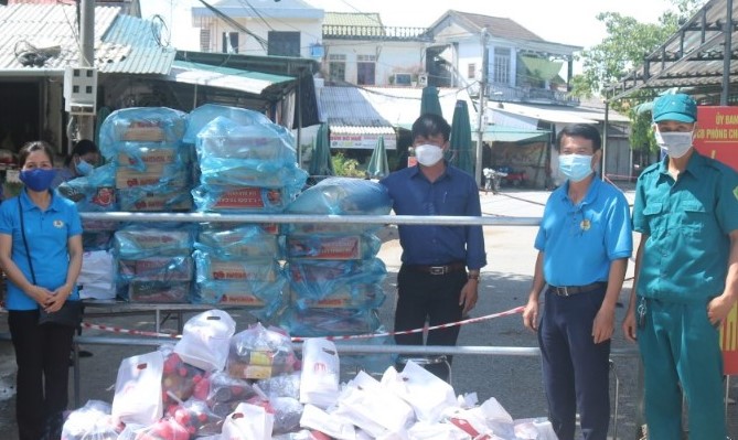 Tổ chức công đoàn tặng quà cho người lao động tại khu vực bị phong tỏa phòng chống dịch COVID -19