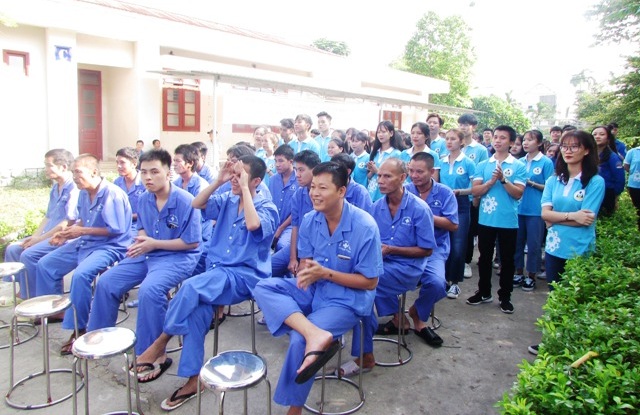 Các bạn đoàn viên thanh niên Trường đại học Kinh tế và BV Tâm thần giao lưu sinh hoạt cùng các bệnh nhân