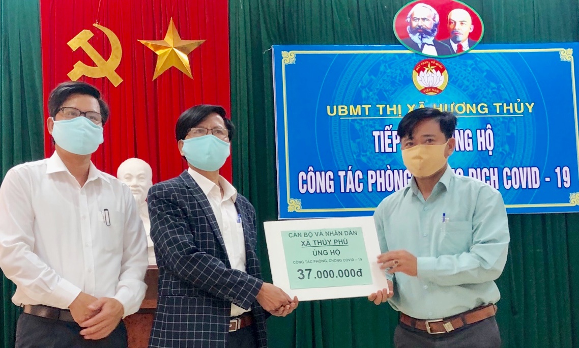 Tính đến 15h hôm nay (6/4), UBMTTQ Việt Nam TX. Hương Thủy đã tiếp nhận được 101 triệu đồng tiền mặt, 2 ngàn khẩu trang vải kháng khuẩn, cùng một số nhu yếu phẩm thiết yếu như gạo, mì tôm… để hỗ trợ, phục vụ công tác phòng, chống dịch COVID-19 trên địa bàn tỉnh.