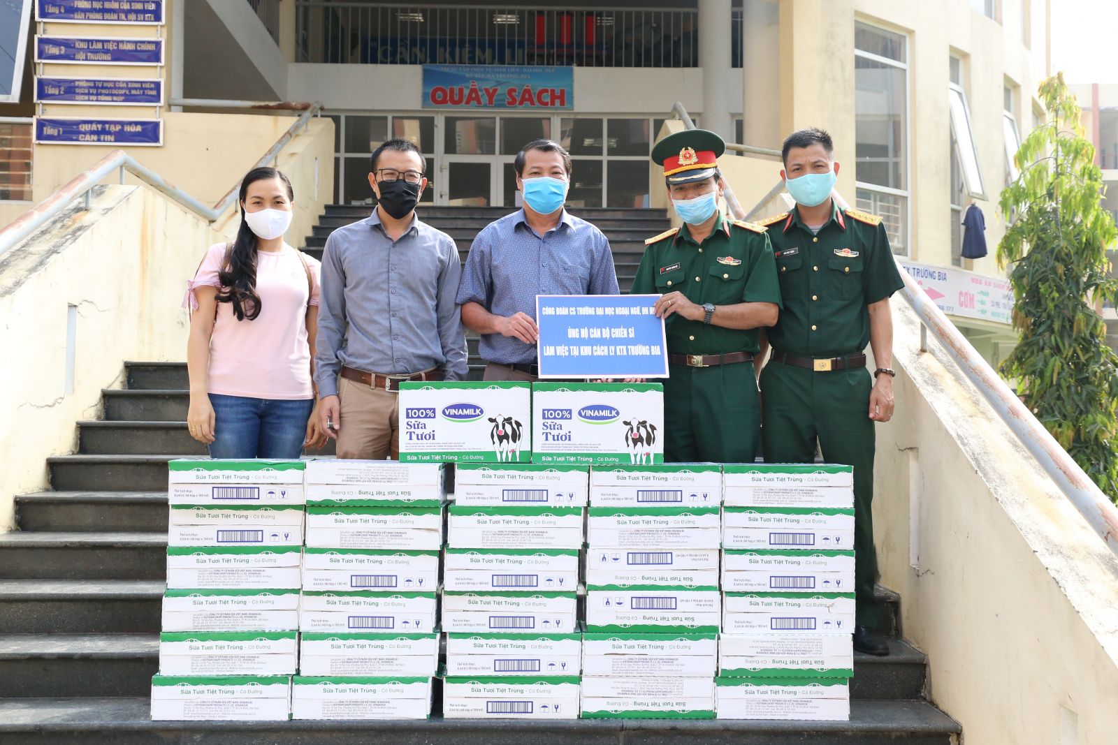 Công đoàn Trường ĐH Ngoại ngữ, ĐH Huế tặng sữa cho các cán bộ, chiến sĩ tại khu cách ly ký túc xá Trường Bia