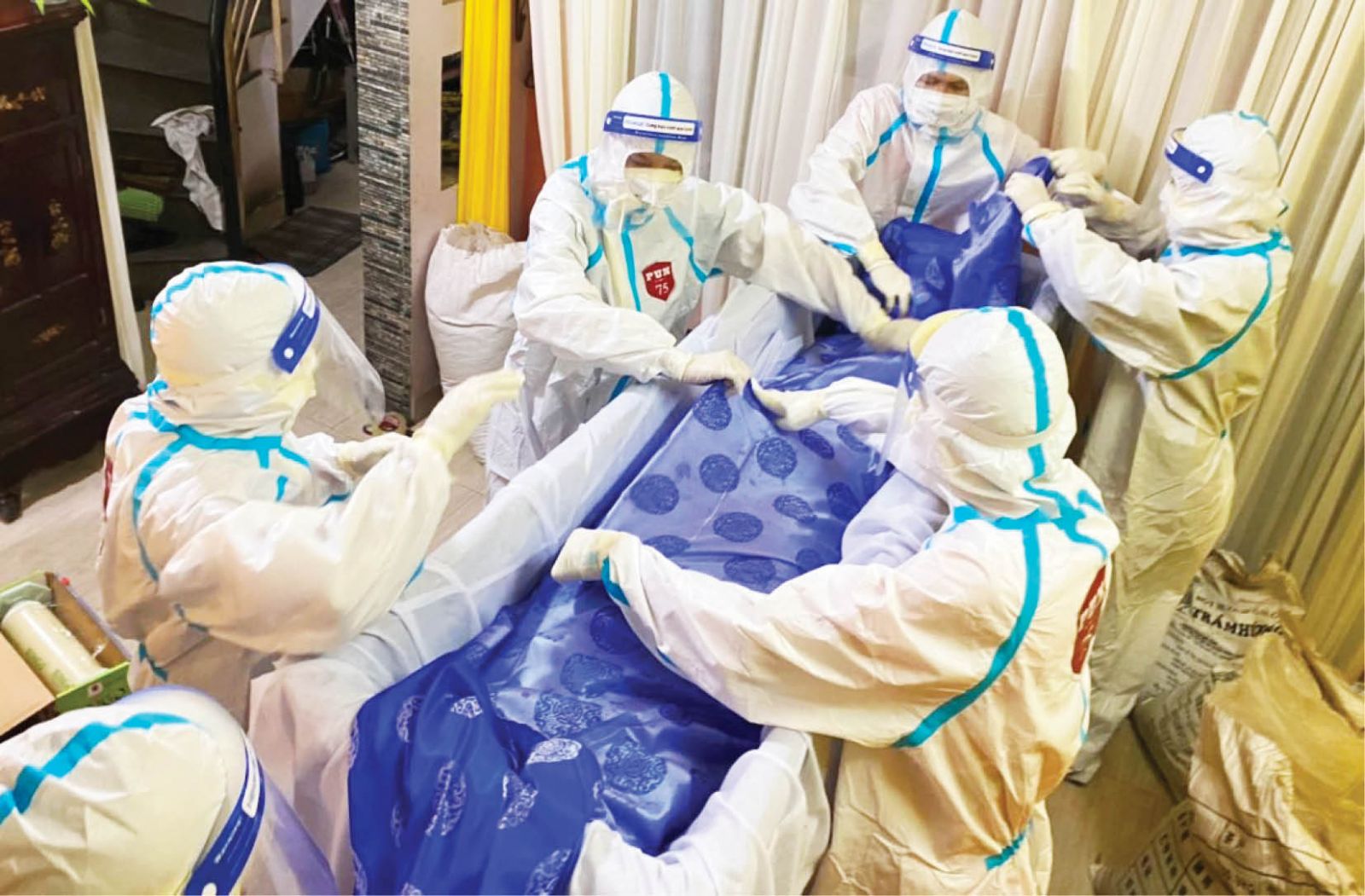 Các thành viên PUN75 khâm liệm người mất vì COVID-19. Ảnh: PUN75 cung cấp