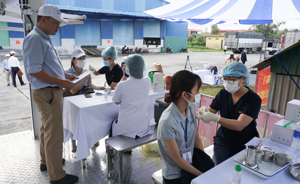 Sau lễ phát động, Trung tâm kiểm soát bệnh tật tỉnh tổ chức tiêm nhắc lại vaccin phòng COVID-19 cho 75 cán bộ, công nhân, người lao động ở khu công nghiệp.