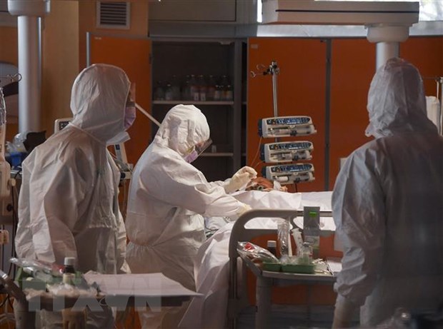 Nhân viên y tế điều trị cho bệnh nhân COVID-19 tại bệnh viện ở Rome, Italy