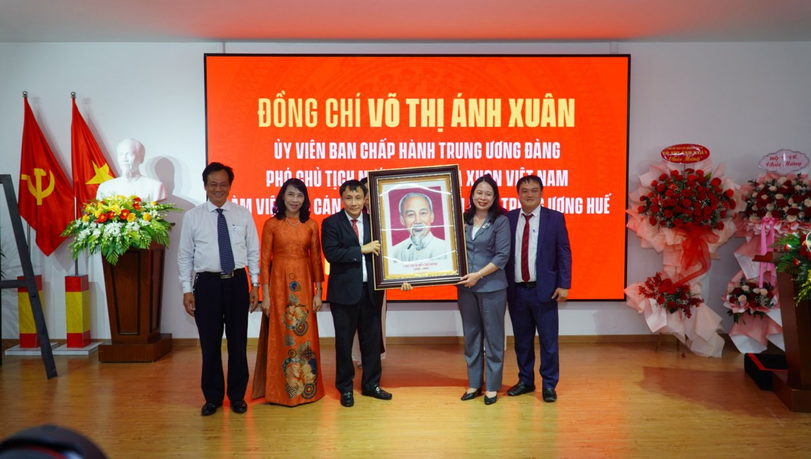 Phó Chủ tịch nước Võ Thị Ánh Xuân tặng quà lưu niệm cho Ban Giám đốc Bệnh viện Trung ương Huế