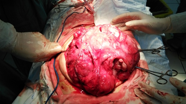 Ngày 17/5, chị Th. nhập viện trong tình trạng bị u chèn ép bụng, chiếm gần hết ổ bụng, thể trạng suy kiệt do không ăn uống được. Chị Th. cho biết, phát hiện u ổ bụng đã 6 tháng nay. U tăng dần về kích thước chèn ép ổ bụng, đã đi điều trị nhiều nơi nhưng các bệnh viện đều không điều trị được.