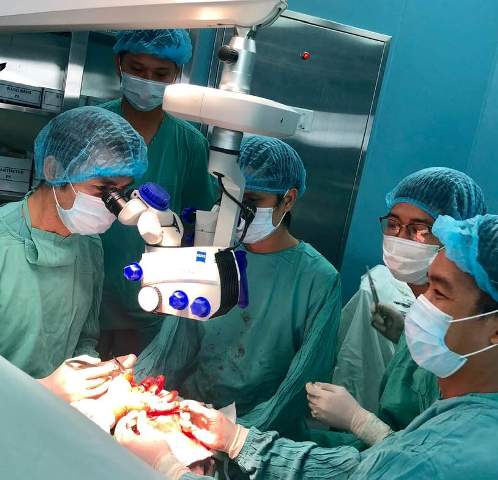 Kíp phẫu thuật gồm các bác sĩ Hồ Mẫn Trường Phú, Lê Khánh Linh, Nguyễn Thanh Sang, Đinh Thị Phương Hoài cùng kíp gây mê xúc rửa, làm sạch vết thương, lấy bỏ phần xương vỡ vụn, tiến hành kết hợp xương bằng xuyên đinh Kirschner dọc trục ngón 4 và 5; nối lại gân gấp nông và sâu ngón tay 4 và 5 theo phương pháp Adelaide bằng chỉ prolene 4.0; đồng thời bó lại bó mạch thần kinh gian ngón hai bên bằng kỹ thuật vi phẫu với sự hỗ trợ của kính hiển vi Carl Zeiss cùng chỉ prolene 9.0.