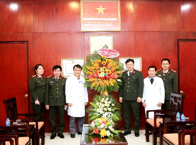 UVTV Tỉnh ủy, Giám đốc Công an tỉnh - Đại tá Nguyễn Thanh Tuấn tặng hoa, chúc mừng Bệnh viện Trung ương Huế