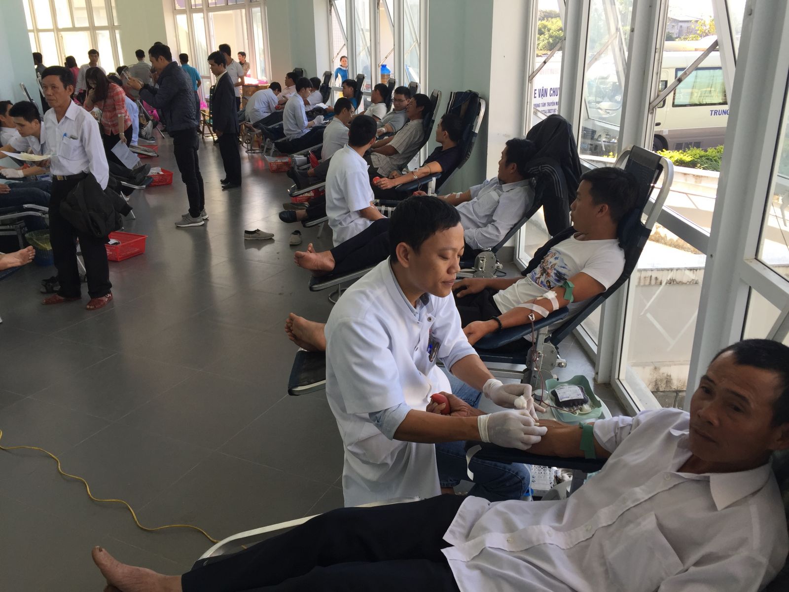 Đến với “Lễ hội xuân hồng” năm nay có đầy đủ lứa tuổi từ đủ 18 đến 60 tuổi. Trong đó nhiều tình nguyện viên đã tham gia nhiều lần hiến máu, như anh Nguyễn Sinh ở thôn Tân Xuân Lai, xã Quảng Thọ, năm nay 46 tuổi nhưng đã có 52 lần tham gia hiến máu tình nguyện. Có mặt tại lễ hội rất sớm, anh Nguyễn Sinh đã làm thủ tục và tình nguyện hiến 350ml máu.