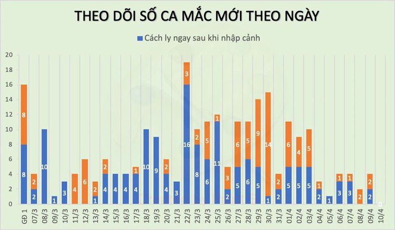 Đến 6h sáng 10/4, tổng số ca mắc Covid-19 tại Việt Nam là 255 trường hợp, trong đó, 158 người từ nước ngoài chiếm 62,2% và 97 người lây nhiễm thứ phát.