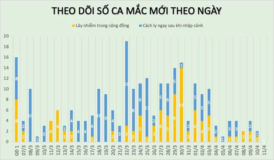 Tính đến sáng 11/4, Việt Nam ghi nhận tổng số 257 ca mắc COVID-19, trong đó có 159 người từ nước ngoài (chiếm 61,9%), 98 người lây nhiễm thứ phát.