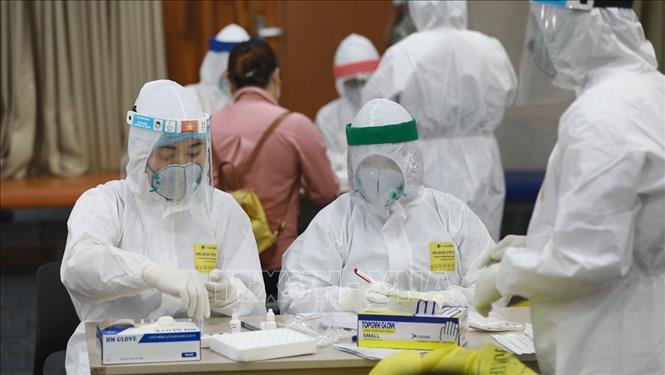 Lấy mẫu xét nghiệm sàng lọc bệnh nhân COVID-19. Ảnh: TTXVN