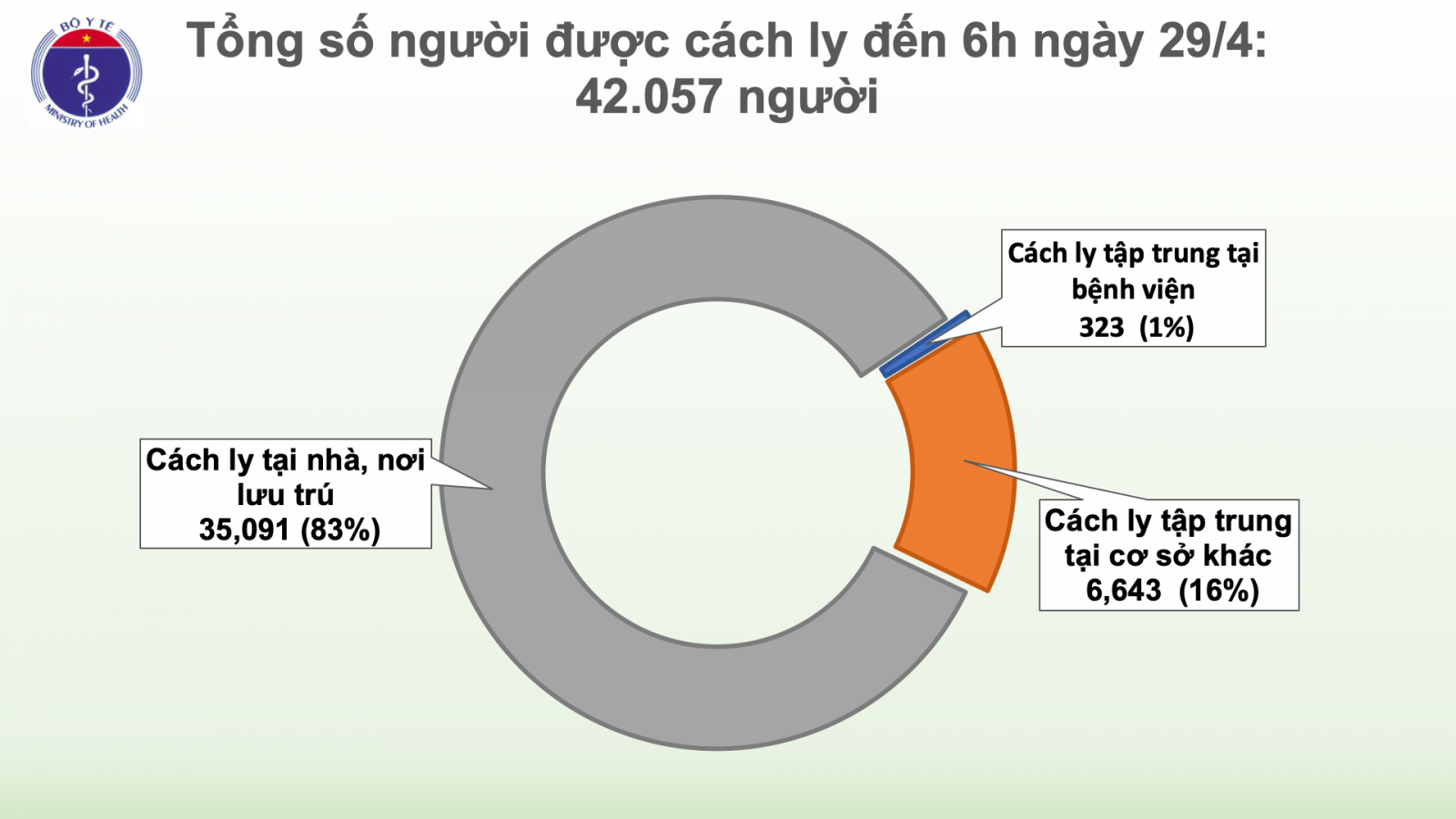 - Tính từ 18h ngày 29/4 đến 6h ngày 30/4: 0 ca mắc mới.