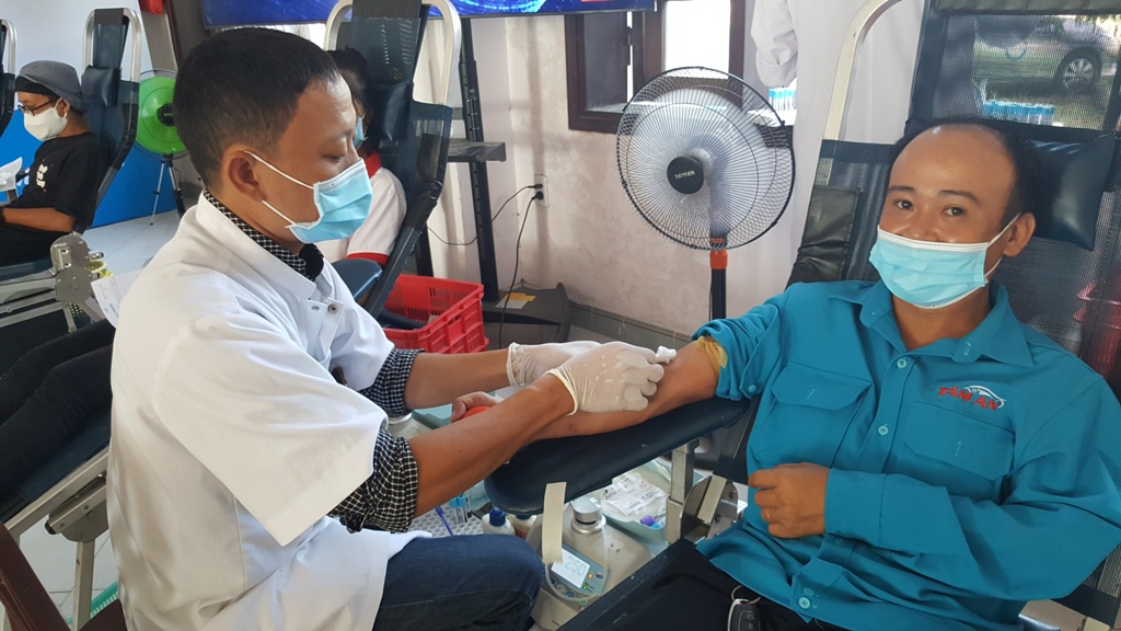 Cán bộ,nhân viên lao động ở Tâm An tham gia hiến máu tình nguyện vào sáng 6/8