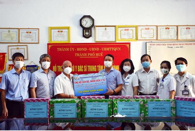 Dịp này, thành phố đã trao 50 triệu đồng cho Trung tâm y tế thành phố, số tiền này được quyên góp từ các nhà hảo tâm, các mạnh thường quân, doanh nghiệp trong chuỗi vận động hưởng ứng “Thành phố Huế chung tay chống dịch” do UBMTTQVN TP. Huế phát động và tặng quà cho đội ngũ y tế tham gia phòng, chống dịch bệnh COVID- 19.