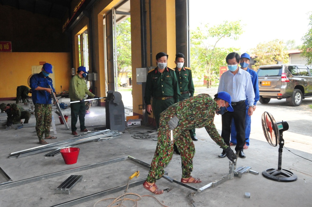 Chiều cùng ngày, Phó Chủ tịch UBND tỉnh Nguyễn Văn Phương đã đến Trạm Sửa chữa – Phòng Kỹ thuật – Bộ Chỉ huy quân sự tỉnh kiểm tra công tác chuẩn bị cơ sở vật chất trong công tác phòng, chống dịch COVID-19. Hiện, đơn vị đã sản xuất được 100 bộ giường, thời gian tới sẽ tiếp tục sản xuất thêm 100 bộ, góp phần bảo đảm cơ sở vật chất, phục vụ tốt nhất cho người được cách ly.
