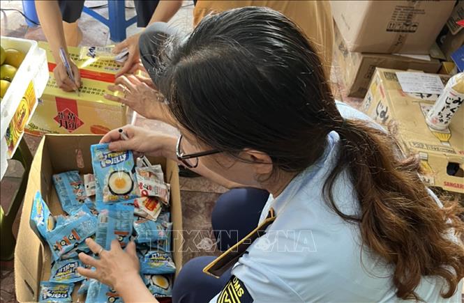 Lực lượng chức năng kiểm tra bánh Trung thu không rõ nguồn gốc. Ảnh: TTXVN