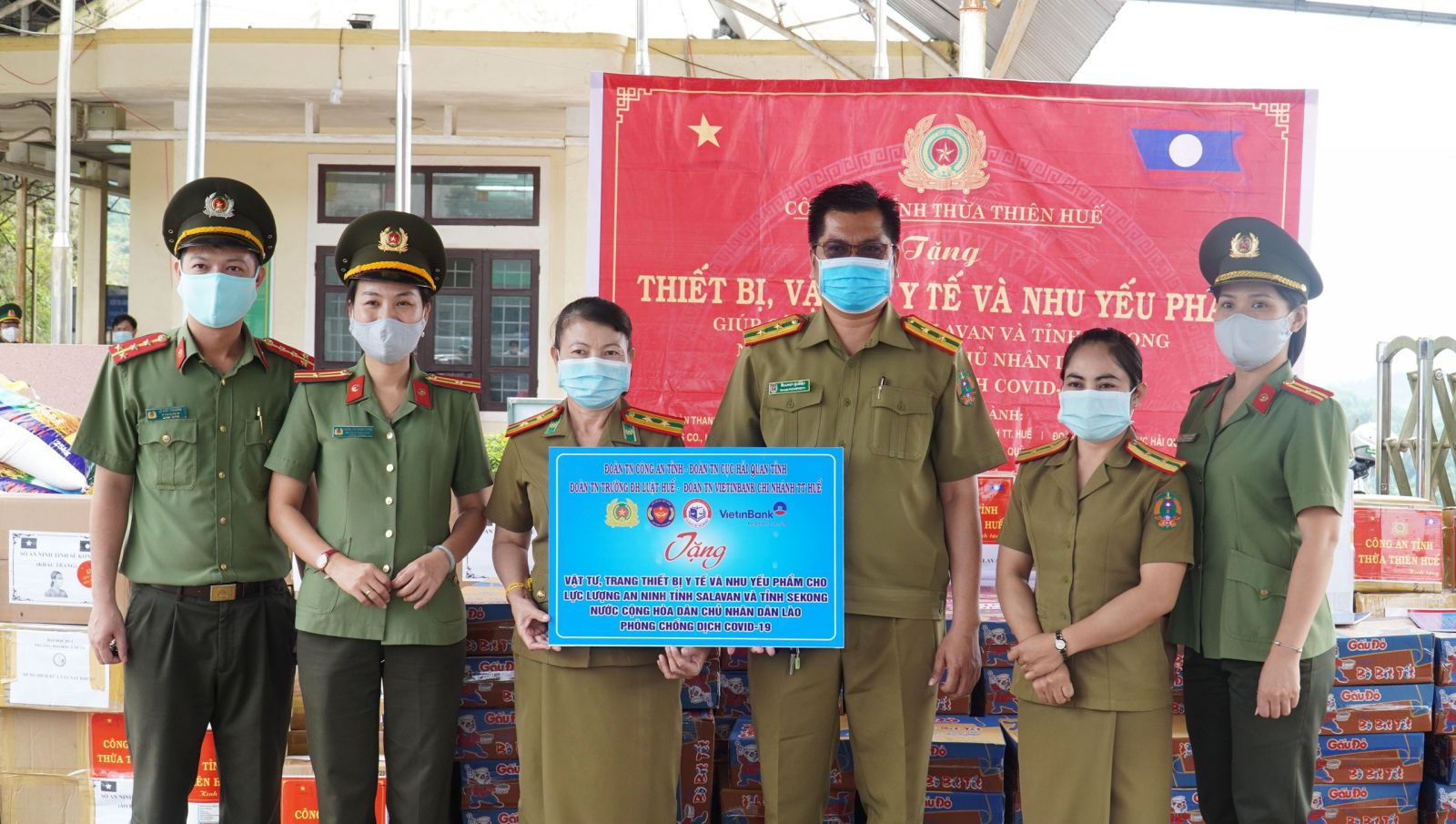 Ngoài ra, hơn 1.300 chai nước rửa tay các loại, 1.000 khẩu trang, 100 thùng mì tôm, cùng nhiều trang thiết bị phòng dịch khác, với tổng trị giá hàng chục triệu đồng đã được Đoàn thanh niên, Hội phụ nữ, Công Đoàn Công an tỉnh, cùng Đoàn Thanh niên các đơn vị: Trường Đại học Luật – Đại học Huế, Vietinbank chi nhánh Huế, Cục Hải quan tỉnh, Trường Đại học Y Dược – Đại học Huế, Trường cao đẳng Công nghiệp Huế, Quỹ những trái tim Huế, Công ty Vietnano, Nhà hàng Lascento cũng đã trao tặng Sở An ninh hai tỉnh Sekong và Salaval phục vụ công tác phòng, chống dịch bệnh COVID-19.