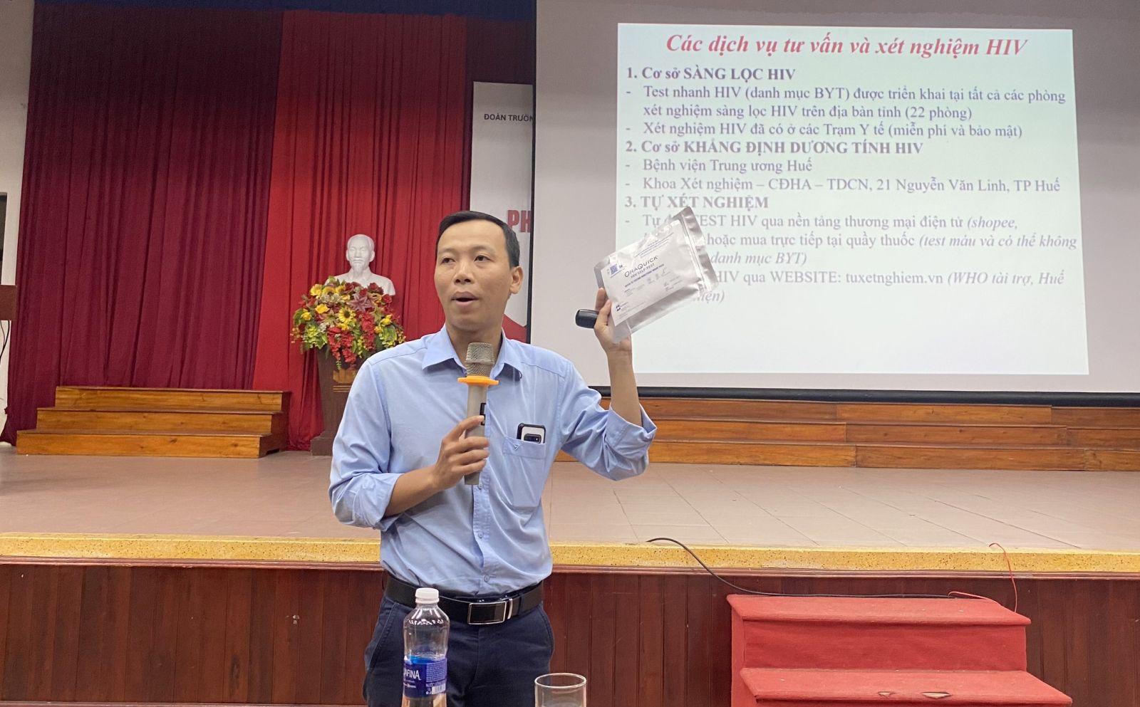 HNN.VN - Tối 10/12, Đoàn Trường đại học (ĐH) Sư phạm, ĐH Huế phối hợp với Trung tâm Kiểm soát bệnh tật tỉnh tổ chức tập huấn phòng chống HIV/AIDS cho 500 đoàn viên, sinh viên.