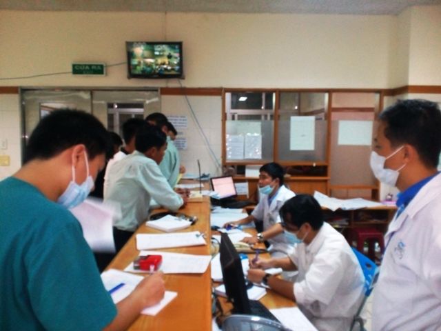 Trong khu tiếp nhận bệnh nhân, các giường bệnh gần như không còn chỗ trống. Những người mặc áo blouse trắng trực cấp cứu khoảng chục người; trong đó, có hai bác sĩ, nhưng ai nấy đều tất bật kiểm tra sức khỏe và phân loại bệnh nhân. Những trường hợp nặng cần can thiệp nhanh chóng để chuyển đến phòng mổ cấp cứu. Bác sĩ Tôn Thất Quý, trực cấp cứu đêm mùng 1 Tết khuôn mặt phờ phạc nói: “Từ chiều đến giờ, có quá nhiều trường hợp bệnh vào cấp cứu; trong đó có cả tai nạn giao thông, ẩu đả do rượu bia”.