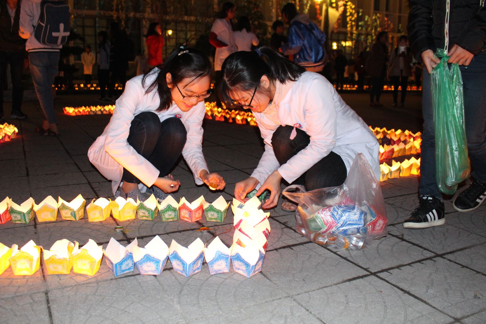Những bông cúc vàng, ánh đèn hoa đăng lung linh thể hiện niềm tri ân sâu sắc