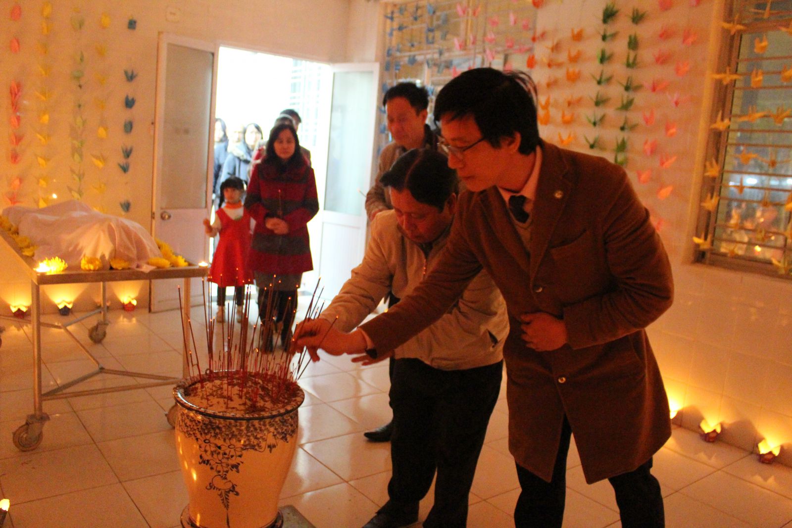 Người thân thành kính thắp nén nhang tưởng nhớ người đã khuất tại nhà xác